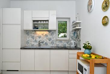 Ferienwohnung bietet Platz für 5 Gäste. Die Betten sind in Schlafzimmern, die es 2 gibt, und in Wohnzimmer, innerhalb einer Gesamtfläche von 40m2, angeordnet. Die Gäste haben eine eigene Terrasse zur Verfügung, auf der sie in warmen Sommernächten genießen können. Es ist erlaubt, Speisen auf dem Gemeinschafts-Grill vorzubereiten. In der Unterkunftseinheit besteht die Möglichkeit des Mitbringens von Haustieren gegen Aufpreis.