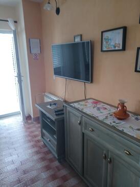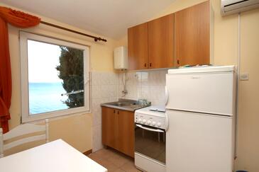 Ferienwohnung bietet Platz für 6 Gäste. Die Betten sind in Schlafzimmern, die es 2 gibt, und in Wohnzimmer, innerhalb einer Gesamtfläche von 58m2, angeordnet. Die Gäste haben eine eigene Terrasse zur Verfügung, auf der sie in warmen Sommernächten genießen können. Das Apartment bietet Meerblick. Es ist erlaubt, Speisen auf dem Gemeinschafts-Grill vorzubereiten.