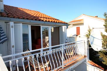 Ferienwohnung bietet Platz für 6 Gäste. Die Betten sind in Schlafzimmern, die es 2 gibt, und in Wohnzimmer, innerhalb einer Gesamtfläche von 58m2, angeordnet. Die Gäste haben eine eigene Terrasse zur Verfügung, auf der sie in warmen Sommernächten genießen können. Das Apartment bietet Meerblick. Es ist erlaubt, Speisen auf dem Gemeinschafts-Grill vorzubereiten.