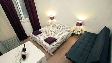 Ferienwohnung bietet Platz für 7 Gäste. Die Betten sind in Schlafzimmern, die es 2 gibt, und in Wohnzimmer, innerhalb einer Gesamtfläche von 60m2, angeordnet. Die Gäste haben einen eigenen Balkon zur Verfügung, auf der sie in warmen Sommernächten genießen können. Das Apartment bietet Meerblick. Es ist erlaubt, Speisen auf dem Gemeinschafts-Grill vorzubereiten. Während ihres Aufenthalts können Gäste das gemeinsam zur Nutzung stehende Schwimmbad benutzen.