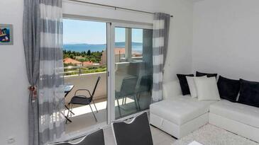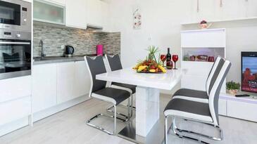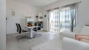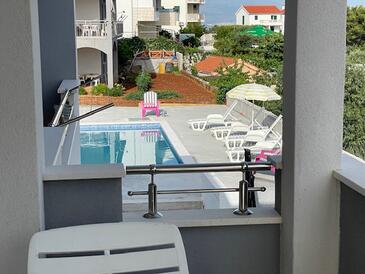 Ferienwohnung bietet Platz für 7 Gäste. Die Betten sind in Schlafzimmern, die es 2 gibt, und in Wohnzimmer, innerhalb einer Gesamtfläche von 60m2, angeordnet. Die Gäste haben einen eigenen Balkon zur Verfügung, auf der sie in warmen Sommernächten genießen können. Das Apartment bietet Meerblick. Es ist erlaubt, Speisen auf dem Gemeinschafts-Grill vorzubereiten. Während ihres Aufenthalts können Gäste das gemeinsam zur Nutzung stehende Schwimmbad benutzen.