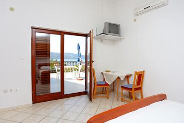 Ferienwohnung bietet Platz für 4 Gäste. Die Betten sind in Schlafzimmern, die es 1 gibt, und in Esszimmer, innerhalb einer Gesamtfläche von 38m2, angeordnet. Die Gäste haben eine eigene Terrasse zur Verfügung, auf der sie in warmen Sommernächten genießen können. Es ist erlaubt, Speisen auf dem Gemeinschafts-Grill vorzubereiten. Durch die Terrasse der gebuchten Unterkunftseinheit gehen auch andere Gäste oder Vermieter.
