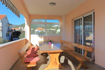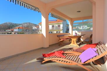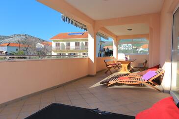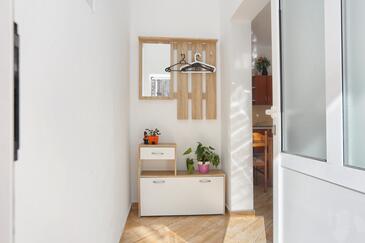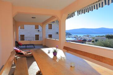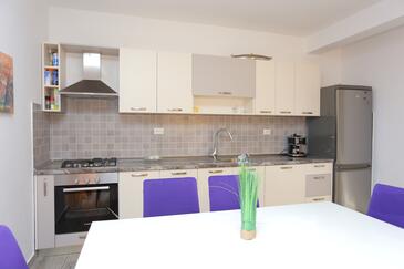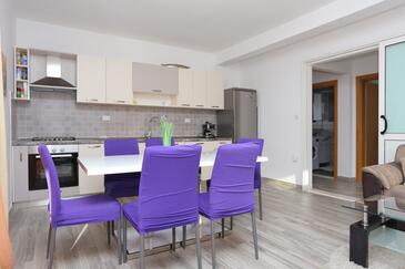 Ferienwohnung bietet Platz für 8 Gäste. Die Betten sind in Schlafzimmern, die es 3 gibt, innerhalb einer Gesamtfläche von 73m2, angeordnet. Die Gäste haben eine eigene Terrasse zur Verfügung, auf der sie in warmen Sommernächten genießen können. Das Apartment bietet Meerblick. Es ist erlaubt, Speisen auf dem Gemeinschafts-Grill vorzubereiten. In der Unterkunftseinheit besteht die Möglichkeit des Mitbringens von Haustieren, und die Dienstleistung ist im Preis der Unterkunft enthalten.