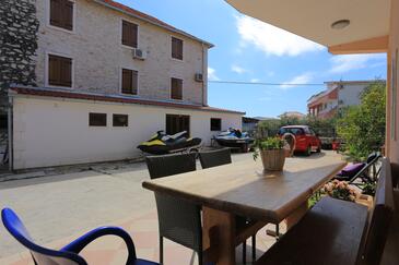 Ferienwohnung bietet Platz für 8 Gäste. Die Betten sind in Schlafzimmern, die es 3 gibt, innerhalb einer Gesamtfläche von 73m2, angeordnet. Die Gäste haben eine eigene Terrasse zur Verfügung, auf der sie in warmen Sommernächten genießen können. Das Apartment bietet Meerblick. Es ist erlaubt, Speisen auf dem Gemeinschafts-Grill vorzubereiten. In der Unterkunftseinheit besteht die Möglichkeit des Mitbringens von Haustieren, und die Dienstleistung ist im Preis der Unterkunft enthalten.