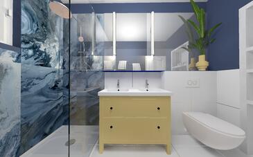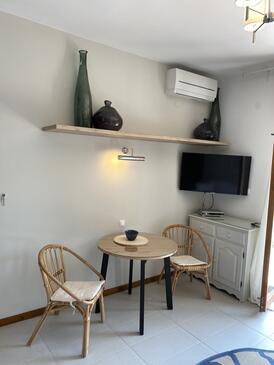 Ferienwohnung bietet Platz für 6 Gäste. Die Betten sind in Schlafzimmern, die es 3 gibt, innerhalb einer Gesamtfläche von 136m2, angeordnet. Die Gäste haben eine eigene Terrasse zur Verfügung, auf der sie in warmen Sommernächten genießen können. Das Apartment bietet Meerblick. Es ist erlaubt, Speisen auf dem Gemeinschafts-Grill vorzubereiten.