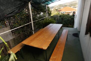 Ferienwohnung bietet Platz für 6 Gäste. Die Betten sind in Schlafzimmern, die es 2 gibt, innerhalb einer Gesamtfläche von 51m2, angeordnet. Die Gäste haben eine eigene Terrasse zur Verfügung, auf der sie in warmen Sommernächten genießen können. Das Apartment bietet Meerblick. Es ist erlaubt, Speisen auf dem Gemeinschafts-Grill vorzubereiten.