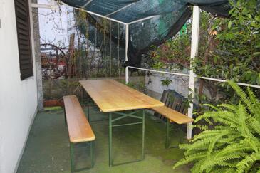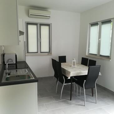 Ferienwohnung bietet Platz für 6 Gäste. Die Betten sind in Schlafzimmern, die es 2 gibt, innerhalb einer Gesamtfläche von 51m2, angeordnet. Die Gäste haben eine eigene Terrasse zur Verfügung, auf der sie in warmen Sommernächten genießen können. Das Apartment bietet Meerblick. Es ist erlaubt, Speisen auf dem Gemeinschafts-Grill vorzubereiten.