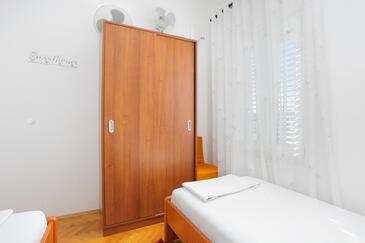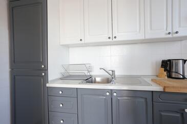 Ferienwohnung bietet Platz für 4 Gäste. Die Betten sind in Schlafzimmern, die es 2 gibt, innerhalb einer Gesamtfläche von 51m2, angeordnet. Die Gäste haben eine eigene Terrasse zur Verfügung, auf der sie in warmen Sommernächten genießen können. Das Apartment bietet Meerblick. Es ist erlaubt, Speisen auf dem Gemeinschafts-Grill vorzubereiten.