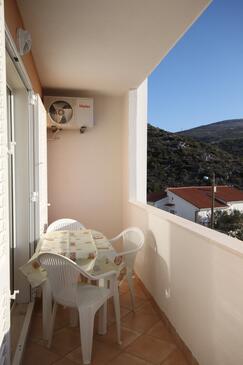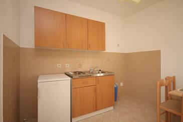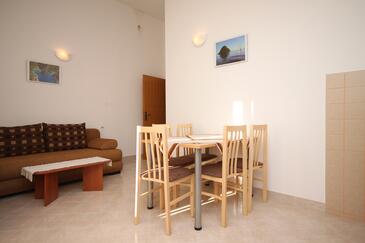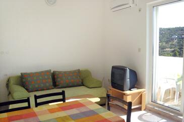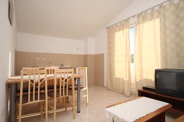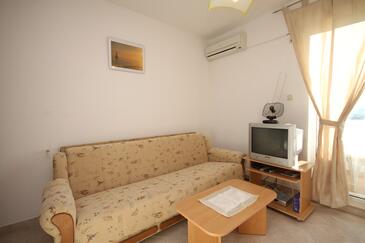 Ferienwohnung bietet Platz für 5 Gäste. Die Betten sind in Schlafzimmern, die es 2 gibt, und in Wohnzimmer, innerhalb einer Gesamtfläche von 42m2, angeordnet. Die Gäste haben einen eigenen Balkon zur Verfügung, auf der sie in warmen Sommernächten genießen können. Das Apartment bietet Meerblick. Es ist erlaubt, Speisen auf dem Gemeinschafts-Grill vorzubereiten.