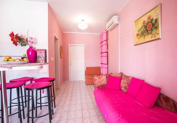 Haus bietet Platz für 12 Gäste. Die Betten sind in Schlafzimmern, die es 4 gibt, und in Wohnzimmer, innerhalb einer Gesamtfläche von 104m2, angeordnet. Die Gäste haben eine eigene Terrasse zur Verfügung, auf der sie in warmen Sommernächten genießen können. Das Haus bietet Meerblick. Für vollen Genuss und Entspannung gibt es einen privaten Grill für Gäste dieser Unterkunft. Während ihres Aufenthalts können sich Gäste im privaten Schwimmbad entspannen. In der Unterkunftseinheit besteht die Möglichkeit des Mitbringens von Haustieren, und die Dienstleistung ist im Preis der Unterkunft enthalten. Räume der gebuchten Unterkunftseinheit werden nicht in eine Ganze verbunden. In der gebuchten Unterkunftseinheit zahlt man am Ort ein Depositum ( der Preis ist an der Internetseite angeführt ).