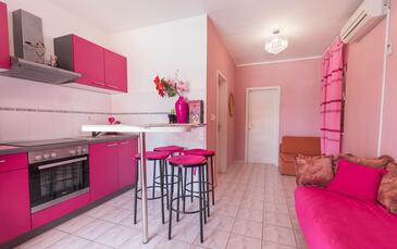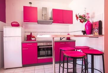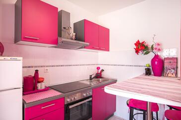 Haus bietet Platz für 12 Gäste. Die Betten sind in Schlafzimmern, die es 4 gibt, und in Wohnzimmer, innerhalb einer Gesamtfläche von 104m2, angeordnet. Die Gäste haben eine eigene Terrasse zur Verfügung, auf der sie in warmen Sommernächten genießen können. Das Haus bietet Meerblick. Für vollen Genuss und Entspannung gibt es einen privaten Grill für Gäste dieser Unterkunft. Während ihres Aufenthalts können sich Gäste im privaten Schwimmbad entspannen. In der Unterkunftseinheit besteht die Möglichkeit des Mitbringens von Haustieren, und die Dienstleistung ist im Preis der Unterkunft enthalten. Räume der gebuchten Unterkunftseinheit werden nicht in eine Ganze verbunden. In der gebuchten Unterkunftseinheit zahlt man am Ort ein Depositum ( der Preis ist an der Internetseite angeführt ).