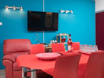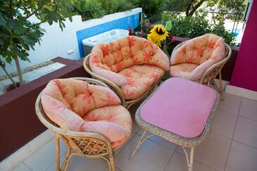 Haus bietet Platz für 12 Gäste. Die Betten sind in Schlafzimmern, die es 5 gibt, und in Esszimmer, innerhalb einer Gesamtfläche von 137m2, angeordnet. Die Gäste haben eine eigene Terrasse zur Verfügung, auf der sie in warmen Sommernächten genießen können. Das Haus bietet Meerblick. Es ist erlaubt, Speisen auf dem Gemeinschafts-Grill vorzubereiten. Während ihres Aufenthalts können sich Gäste im privaten Schwimmbad entspannen. In der Unterkunftseinheit besteht die Möglichkeit des Mitbringens von Haustieren, und die Dienstleistung ist im Preis der Unterkunft enthalten. Räume der gebuchten Unterkunftseinheit werden nicht in eine Ganze verbunden. In der gebuchten Unterkunftseinheit zahlt man am Ort ein Depositum ( der Preis ist an der Internetseite angeführt ).