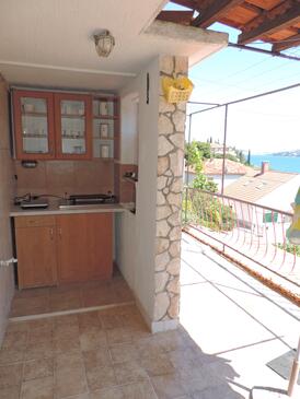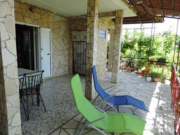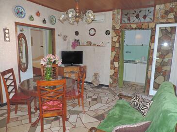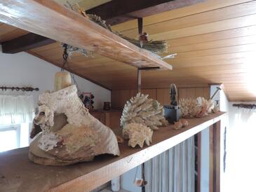 Ferienwohnung bietet Platz für 5 Gäste. Die Betten sind in Schlafzimmern, die es 2 gibt, und in Wohnzimmer, innerhalb einer Gesamtfläche von 57m2, angeordnet. Die Gäste haben eine eigene Terrasse zur Verfügung, auf der sie in warmen Sommernächten genießen können. Das Apartment bietet Meerblick. Es ist erlaubt, Speisen auf dem Gemeinschafts-Grill vorzubereiten.