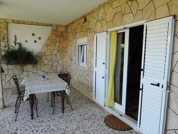 Ferienwohnung bietet Platz für 5 Gäste. Die Betten sind in Schlafzimmern, die es 2 gibt, und in Wohnzimmer, innerhalb einer Gesamtfläche von 57m2, angeordnet. Die Gäste haben eine eigene Terrasse zur Verfügung, auf der sie in warmen Sommernächten genießen können. Das Apartment bietet Meerblick. Es ist erlaubt, Speisen auf dem Gemeinschafts-Grill vorzubereiten.