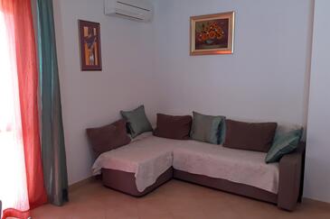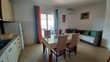 Ferienwohnung bietet Platz für 5 Gäste. Die Betten sind in Schlafzimmern, die es 3 gibt, innerhalb einer Gesamtfläche von 69m2, angeordnet. Die Gäste haben eine eigene Terrasse zur Verfügung, auf der sie in warmen Sommernächten genießen können. Das Apartment bietet Meerblick. Es ist erlaubt, Speisen auf dem Gemeinschafts-Grill vorzubereiten.