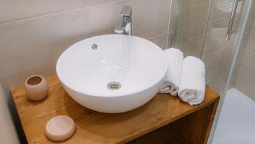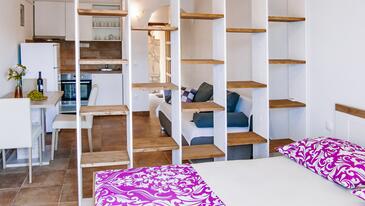 Ferienwohnung bietet Platz für 5 Gäste. Die Betten sind in Schlafzimmern, die es 1 gibt, und in Wohnzimmer, innerhalb einer Gesamtfläche von 46m2, angeordnet. Die Gäste haben einen eigenen Balkon zur Verfügung, auf der sie in warmen Sommernächten genießen können. Das Apartment bietet Meerblick. Es ist erlaubt, Speisen auf dem Gemeinschafts-Grill vorzubereiten. Die reservierte Unterkunftseinheit verfügt über einen gemeinsame Terrasse.