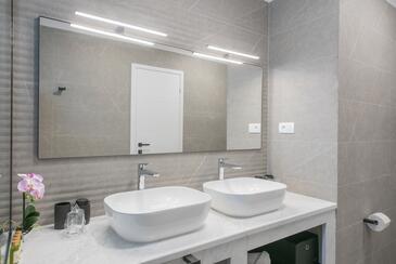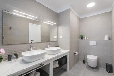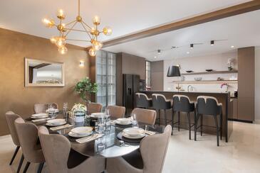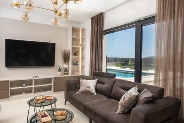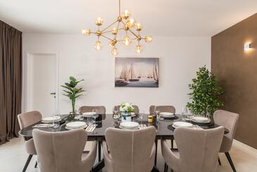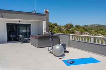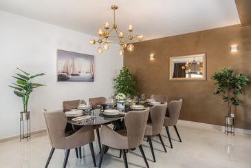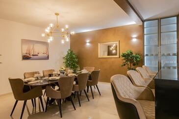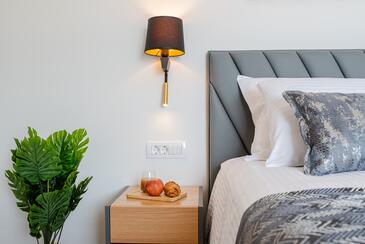 Haus bietet Platz für 7 Gäste. Die Betten sind in Schlafzimmern, die es 3 gibt, innerhalb einer Gesamtfläche von 190m2, angeordnet. Die Gäste haben eine eigene Terrasse zur Verfügung, auf der sie in warmen Sommernächten genießen können. Das Haus bietet Meerblick. Für vollen Genuss und Entspannung gibt es einen privaten Grill für Gäste dieser Unterkunft. Während ihres Aufenthalts können sich Gäste im privaten Schwimmbad entspannen. In der Unterkunftseinheit besteht die Möglichkeit des Mitbringens von Haustieren gegen Aufpreis.