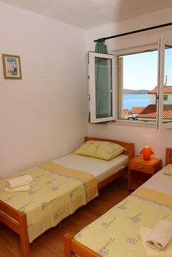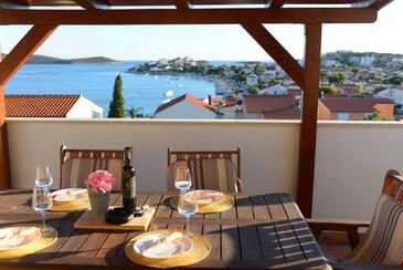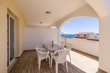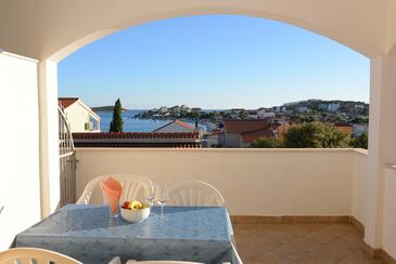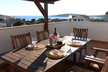 Ferienwohnung bietet Platz für 6 Gäste. Die Betten sind in Schlafzimmern, die es 2 gibt, und in Wohnzimmer, innerhalb einer Gesamtfläche von 51m2, angeordnet. Die Gäste haben eine eigene Terrasse zur Verfügung, auf der sie in warmen Sommernächten genießen können. Das Apartment bietet Meerblick. Es ist erlaubt, Speisen auf dem Gemeinschafts-Grill vorzubereiten. Während ihres Aufenthalts können Gäste das gemeinsam zur Nutzung stehende Schwimmbad benutzen.