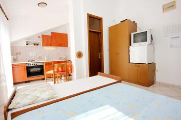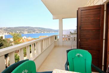 Ferienwohnung bietet Platz für 5 Gäste. Die Betten sind in Schlafzimmern, die es 2 gibt, und in Esszimmer, innerhalb einer Gesamtfläche von 43m2, angeordnet. Die Gäste haben eine eigene Terrasse zur Verfügung, auf der sie in warmen Sommernächten genießen können. Das Apartment bietet Meerblick. Es ist erlaubt, Speisen auf dem Gemeinschafts-Grill vorzubereiten.