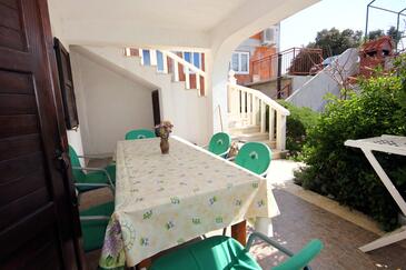 Ferienwohnung bietet Platz für 5 Gäste. Die Betten sind in Schlafzimmern, die es 2 gibt, und in Esszimmer, innerhalb einer Gesamtfläche von 43m2, angeordnet. Die Gäste haben eine eigene Terrasse zur Verfügung, auf der sie in warmen Sommernächten genießen können. Das Apartment bietet Meerblick. Es ist erlaubt, Speisen auf dem Gemeinschafts-Grill vorzubereiten.