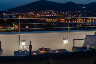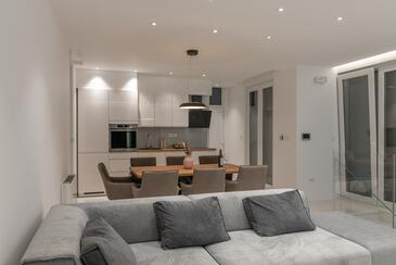 Haus bietet Platz für 8 Gäste. Die Betten sind in Schlafzimmern, die es 4 gibt, innerhalb einer Gesamtfläche von 125m2, angeordnet. Die Gäste haben eine eigene Terrasse zur Verfügung, auf der sie in warmen Sommernächten genießen können. Das Haus bietet Meerblick. Für vollen Genuss und Entspannung gibt es einen privaten Grill für Gäste dieser Unterkunft. Während ihres Aufenthalts können sich Gäste im privaten Schwimmbad entspannen. In der gebuchten Unterkunftseinheit zahlt man am Ort ein Depositum ( der Preis ist an der Internetseite angeführt ).