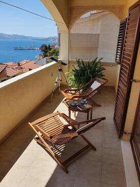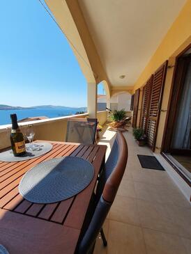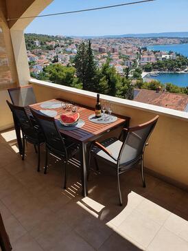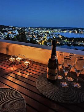 Ferienwohnung bietet Platz für 6 Gäste. Die Betten sind in Schlafzimmern, die es 3 gibt, innerhalb einer Gesamtfläche von 101m2, angeordnet. Die Gäste haben eine eigene Terrasse zur Verfügung, auf der sie in warmen Sommernächten genießen können. Das Apartment bietet Meerblick. Für vollen Genuss und Entspannung gibt es einen privaten Grill für Gäste dieser Unterkunft.