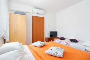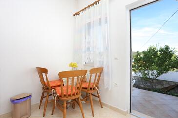 Ferienwohnung bietet Platz für 3 Gäste. Die Betten sind in Schlafzimmern, die es 1 gibt, innerhalb einer Gesamtfläche von 27m2, angeordnet. Die Gäste haben eine eigene Terrasse zur Verfügung, auf der sie in warmen Sommernächten genießen können. Das Apartment bietet Meerblick. Es ist erlaubt, Speisen auf dem Gemeinschafts-Grill vorzubereiten.