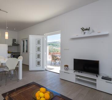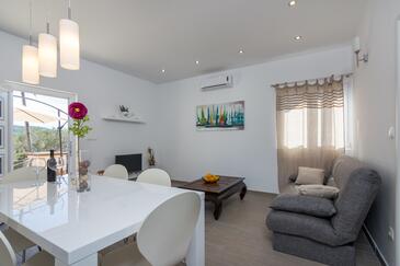 Haus bietet Platz für 7 Gäste. Die Betten sind in Schlafzimmern, die es 2 gibt, und in Wohnzimmer, innerhalb einer Gesamtfläche von 70m2, angeordnet. Die Gäste haben eine eigene Terrasse zur Verfügung, auf der sie in warmen Sommernächten genießen können. Das Haus bietet Meerblick. Für vollen Genuss und Entspannung gibt es einen privaten Grill für Gäste dieser Unterkunft.