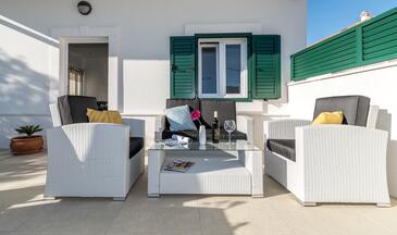 Haus bietet Platz für 7 Gäste. Die Betten sind in Schlafzimmern, die es 2 gibt, und in Wohnzimmer, innerhalb einer Gesamtfläche von 70m2, angeordnet. Die Gäste haben eine eigene Terrasse zur Verfügung, auf der sie in warmen Sommernächten genießen können. Das Haus bietet Meerblick. Für vollen Genuss und Entspannung gibt es einen privaten Grill für Gäste dieser Unterkunft.