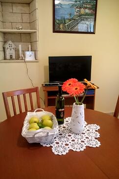 Haus bietet Platz für 5 Gäste. Die Betten sind in Schlafzimmern, die es 2 gibt, und in Wohnzimmer, innerhalb einer Gesamtfläche von 50m2, angeordnet. Die Gäste haben eine eigene Terrasse zur Verfügung, auf der sie in warmen Sommernächten genießen können. Das Haus bietet Meerblick. Für vollen Genuss und Entspannung gibt es einen privaten Grill für Gäste dieser Unterkunft.