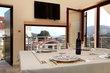 Haus bietet Platz für 7 Gäste. Die Betten sind in Schlafzimmern, die es 3 gibt, und in Wohnzimmer, innerhalb einer Gesamtfläche von 83m2, angeordnet. Die Gäste haben eine eigene Terrasse zur Verfügung, auf der sie in warmen Sommernächten genießen können. Das Haus bietet Meerblick. Für vollen Genuss und Entspannung gibt es einen privaten Grill für Gäste dieser Unterkunft. Während ihres Aufenthalts können sich Gäste im privaten Schwimmbad entspannen. In der Unterkunftseinheit besteht die Möglichkeit des Mitbringens von Haustieren, und die Dienstleistung ist im Preis der Unterkunft enthalten. Räume der gebuchten Unterkunftseinheit werden nicht in eine Ganze verbunden.
