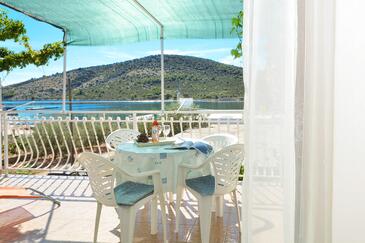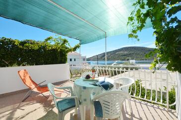 Ferienwohnung bietet Platz für 6 Gäste. Die Betten sind in Schlafzimmern, die es 2 gibt, und in Wohnzimmer, innerhalb einer Gesamtfläche von 76m2, angeordnet. Die Gäste haben eine eigene Terrasse zur Verfügung, auf der sie in warmen Sommernächten genießen können. Es ist erlaubt, Speisen auf dem Gemeinschafts-Grill vorzubereiten.