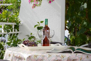 Ferienwohnung bietet Platz für 6 Gäste. Die Betten sind in Schlafzimmern, die es 2 gibt, und in Wohnzimmer, innerhalb einer Gesamtfläche von 76m2, angeordnet. Die Gäste haben eine eigene Terrasse zur Verfügung, auf der sie in warmen Sommernächten genießen können. Es ist erlaubt, Speisen auf dem Gemeinschafts-Grill vorzubereiten.