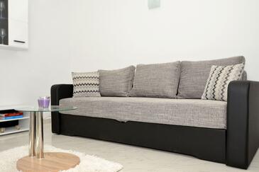 Haus bietet Platz für 5 Gäste. Die Betten sind in Schlafzimmern, die es 2 gibt, und in Wohnzimmer, innerhalb einer Gesamtfläche von 66m2, angeordnet. Die Gäste haben eine eigene Terrasse zur Verfügung, auf der sie in warmen Sommernächten genießen können. Das Haus bietet Meerblick. Für vollen Genuss und Entspannung gibt es einen privaten Grill für Gäste dieser Unterkunft.