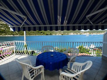 Ferienwohnung bietet Platz für 4 Gäste. Die Betten sind in Schlafzimmern, die es 2 gibt, innerhalb einer Gesamtfläche von 46m2, angeordnet. Die Gäste haben eine eigene Terrasse zur Verfügung, auf der sie in warmen Sommernächten genießen können. Das Apartment bietet Meerblick. Es ist erlaubt, Speisen auf dem Gemeinschafts-Grill vorzubereiten.
