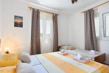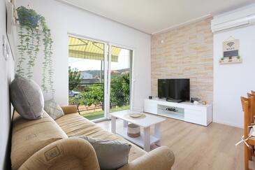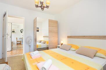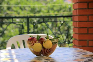Ferienwohnung bietet Platz für 6 Gäste. Die Betten sind in Schlafzimmern, die es 2 gibt, innerhalb einer Gesamtfläche von 65m2, angeordnet. Die Gäste haben eine eigene Terrasse zur Verfügung, auf der sie in warmen Sommernächten genießen können. Das Apartment bietet Meerblick. Es ist erlaubt, Speisen auf dem Gemeinschafts-Grill vorzubereiten.