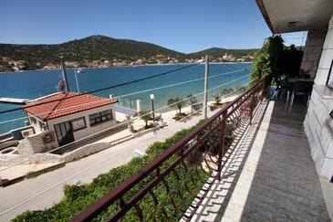 Ferienwohnung bietet Platz für 6 Gäste. Die Betten sind in Schlafzimmern, die es 3 gibt, und in Wohnzimmer, innerhalb einer Gesamtfläche von 84m2, angeordnet. Die Gäste haben eine eigene Terrasse zur Verfügung, auf der sie in warmen Sommernächten genießen können. Das Apartment bietet Meerblick. Es ist erlaubt, Speisen auf dem Gemeinschafts-Grill vorzubereiten.