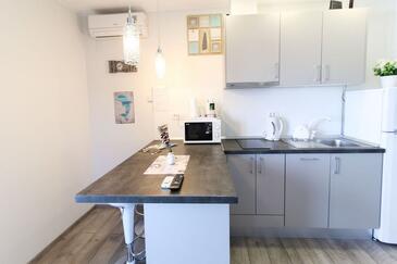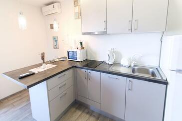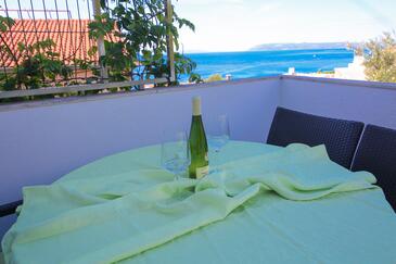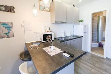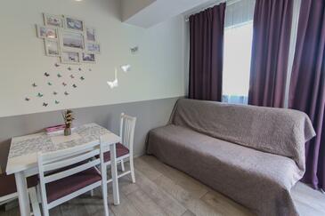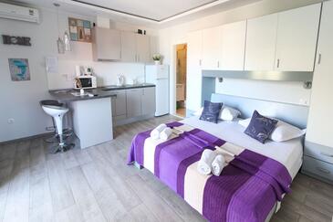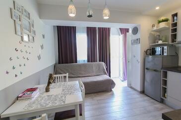 Ferienwohnung bietet Platz für 3 Gäste. Die Betten sind in Schlafzimmern, die es 1 gibt, und in Wohnzimmer, innerhalb einer Gesamtfläche von 33m2, angeordnet. Die Gäste haben eine eigene Terrasse zur Verfügung, auf der sie in warmen Sommernächten genießen können. Das Apartment bietet Meerblick. Es ist erlaubt, Speisen auf dem Gemeinschafts-Grill vorzubereiten.