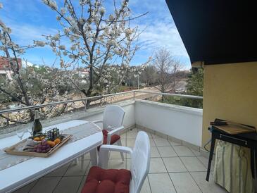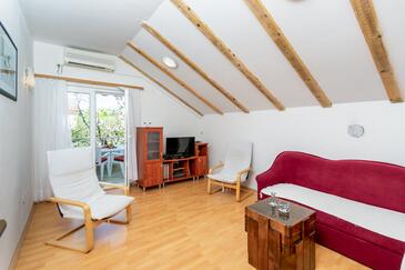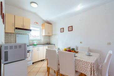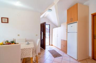 Ferienwohnung bietet Platz für 5 Gäste. Die Betten sind in Schlafzimmern, die es 2 gibt, innerhalb einer Gesamtfläche von 53m2, angeordnet. Die Gäste haben eine eigene Terrasse zur Verfügung, auf der sie in warmen Sommernächten genießen können. Für vollen Genuss und Entspannung gibt es einen privaten Grill für Gäste dieser Unterkunft.