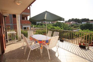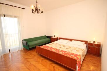 Ferienwohnung bietet Platz für 6 Gäste. Die Betten sind in Schlafzimmern, die es 3 gibt, innerhalb einer Gesamtfläche von 77m2, angeordnet. Die Gäste haben eine eigene Terrasse zur Verfügung, auf der sie in warmen Sommernächten genießen können. Das Apartment bietet Meerblick. Es ist erlaubt, Speisen auf dem Gemeinschafts-Grill vorzubereiten. In der Unterkunftseinheit besteht die Möglichkeit des Mitbringens von Haustieren gegen Aufpreis.