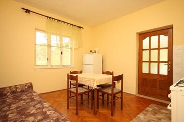 Ferienwohnung bietet Platz für 5 Gäste. Die Betten sind in Schlafzimmern, die es 2 gibt, und in Esszimmer, innerhalb einer Gesamtfläche von 50m2, angeordnet. Die Gäste haben eine eigene Terrasse zur Verfügung, auf der sie in warmen Sommernächten genießen können. Das Apartment bietet Meerblick. Es ist erlaubt, Speisen auf dem Gemeinschafts-Grill vorzubereiten.