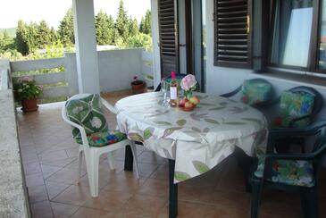 Ferienwohnung bietet Platz für 6 Gäste. Die Betten sind in Schlafzimmern, die es 3 gibt, innerhalb einer Gesamtfläche von 92m2, angeordnet. Die Gäste haben eine eigene Terrasse zur Verfügung, auf der sie in warmen Sommernächten genießen können. Das Apartment bietet Meerblick. Es ist erlaubt, Speisen auf dem Gemeinschafts-Grill vorzubereiten.