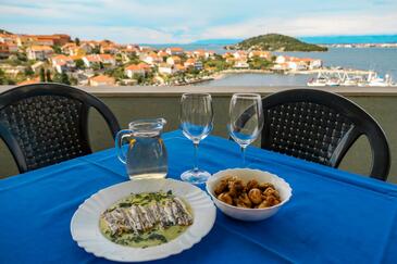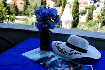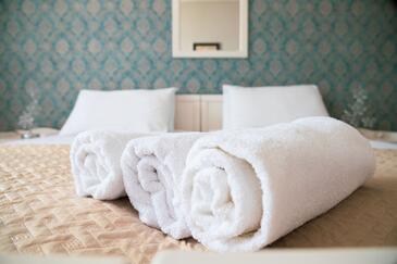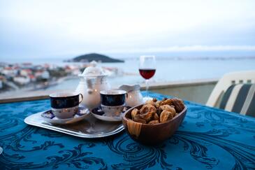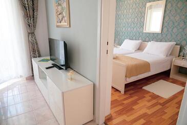 Ferienwohnung bietet Platz für 5 Gäste. Die Betten sind in Schlafzimmern, die es 2 gibt, und in Wohnzimmer, innerhalb einer Gesamtfläche von 47m2, angeordnet. Die Gäste haben eine eigene Terrasse zur Verfügung, auf der sie in warmen Sommernächten genießen können. Das Apartment bietet Meerblick. Während ihres Aufenthalts können Gäste das gemeinsam zur Nutzung stehende Schwimmbad benutzen. In der Unterkunftseinheit besteht die Möglichkeit des Mitbringens von Haustieren gegen Aufpreis.
