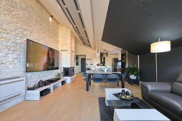 Ferienwohnung bietet Platz für 6 Gäste. Die Betten sind in Schlafzimmern, die es 3 gibt, innerhalb einer Gesamtfläche von 100m2, angeordnet. Die Gäste haben eine eigene Terrasse zur Verfügung, auf der sie in warmen Sommernächten genießen können. Das Apartment bietet Meerblick.
