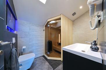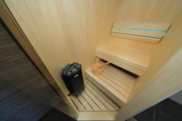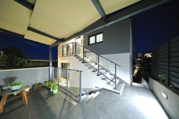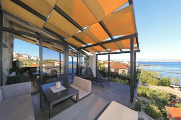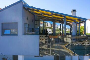 Ferienwohnung bietet Platz für 6 Gäste. Die Betten sind in Schlafzimmern, die es 3 gibt, innerhalb einer Gesamtfläche von 100m2, angeordnet. Die Gäste haben eine eigene Terrasse zur Verfügung, auf der sie in warmen Sommernächten genießen können. Das Apartment bietet Meerblick.