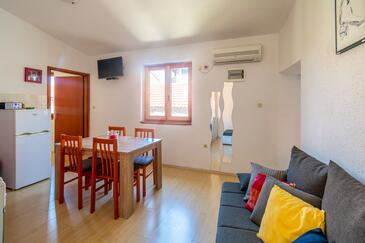 Ferienwohnung bietet Platz für 4 Gäste. Die Betten sind in Schlafzimmern, die es 2 gibt, innerhalb einer Gesamtfläche von 52m2, angeordnet. In der Unterkunftseinheit besteht die Möglichkeit des Mitbringens von Haustieren gegen Aufpreis. Die reservierte Unterkunftseinheit hat keinen Balkon und keine Terrasse.