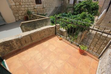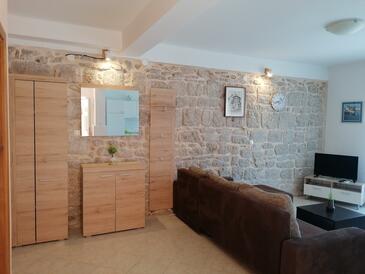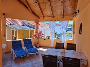 Ferienwohnung bietet Platz für 6 Gäste. Die Betten sind in Schlafzimmern, die es 2 gibt, und in Esszimmer, innerhalb einer Gesamtfläche von 57m2, angeordnet. Die Gäste haben eine eigene Terrasse zur Verfügung, auf der sie in warmen Sommernächten genießen können. Das Apartment bietet Meerblick. Es ist erlaubt, Speisen auf dem Gemeinschafts-Grill vorzubereiten.