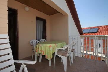 Ferienwohnung bietet Platz für 5 Gäste. Die Betten sind in Schlafzimmern, die es 2 gibt, und in Esszimmer, innerhalb einer Gesamtfläche von 72m2, angeordnet. Die Gäste haben eine eigene Terrasse zur Verfügung, auf der sie in warmen Sommernächten genießen können. Das Apartment bietet Meerblick. Es ist erlaubt, Speisen auf dem Gemeinschafts-Grill vorzubereiten.
