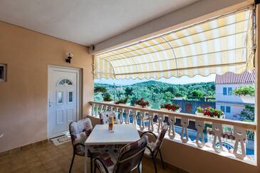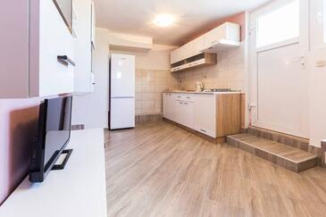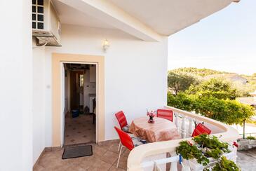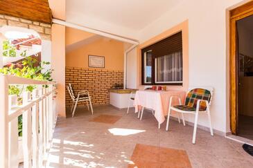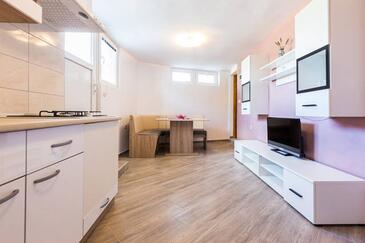 Ferienwohnung bietet Platz für 6 Gäste. Die Betten sind in Schlafzimmern, die es 2 gibt, und in Wohnzimmer, innerhalb einer Gesamtfläche von 68m2, angeordnet. Die Gäste haben eine eigene Terrasse zur Verfügung, auf der sie in warmen Sommernächten genießen können. Das Apartment bietet Meerblick. Es ist erlaubt, Speisen auf dem Gemeinschafts-Grill vorzubereiten.