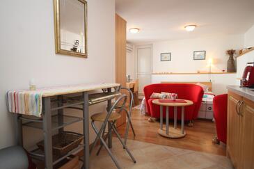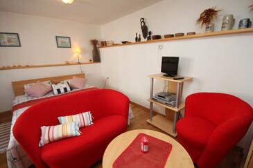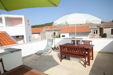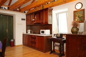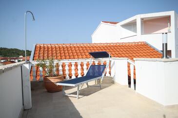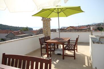 Haus bietet Platz für 9 Gäste. Die Betten sind in Schlafzimmern, die es 4 gibt, innerhalb einer Gesamtfläche von 106m2, angeordnet. Die Gäste haben eine eigene Terrasse zur Verfügung, auf der sie in warmen Sommernächten genießen können. Das Haus bietet Meerblick. Für vollen Genuss und Entspannung gibt es einen privaten Grill für Gäste dieser Unterkunft.